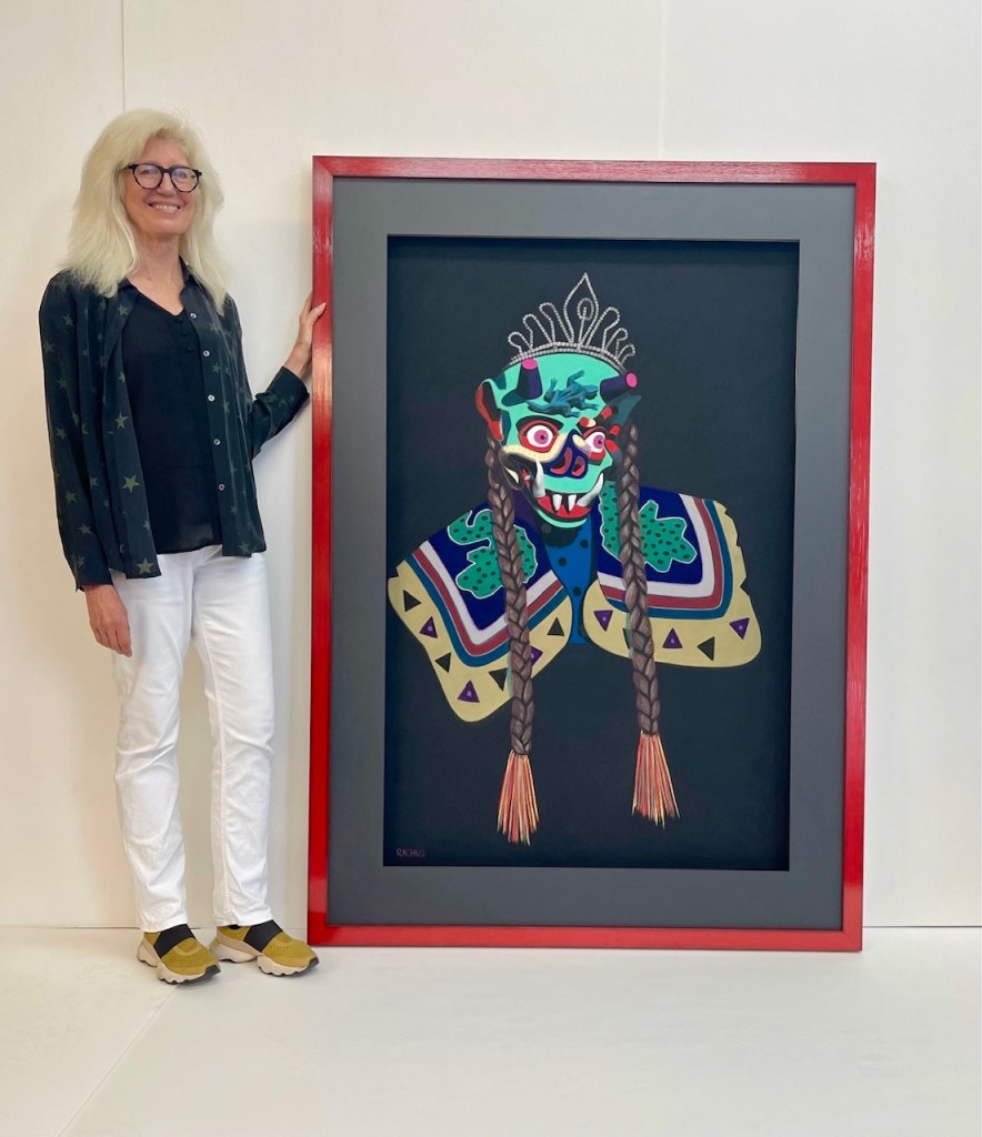 With “Overlord,” soft pastel on sandpaper, 70” x 50”