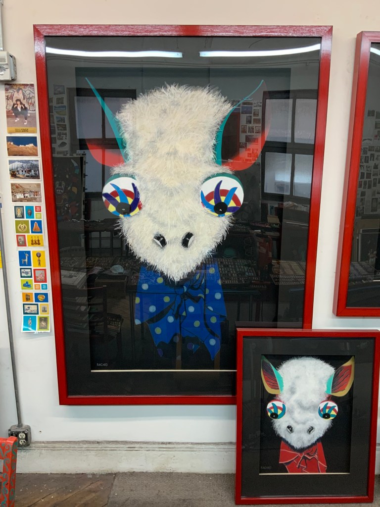 “Sacrificial” (on the wall) and “Trickster” (on the floor)